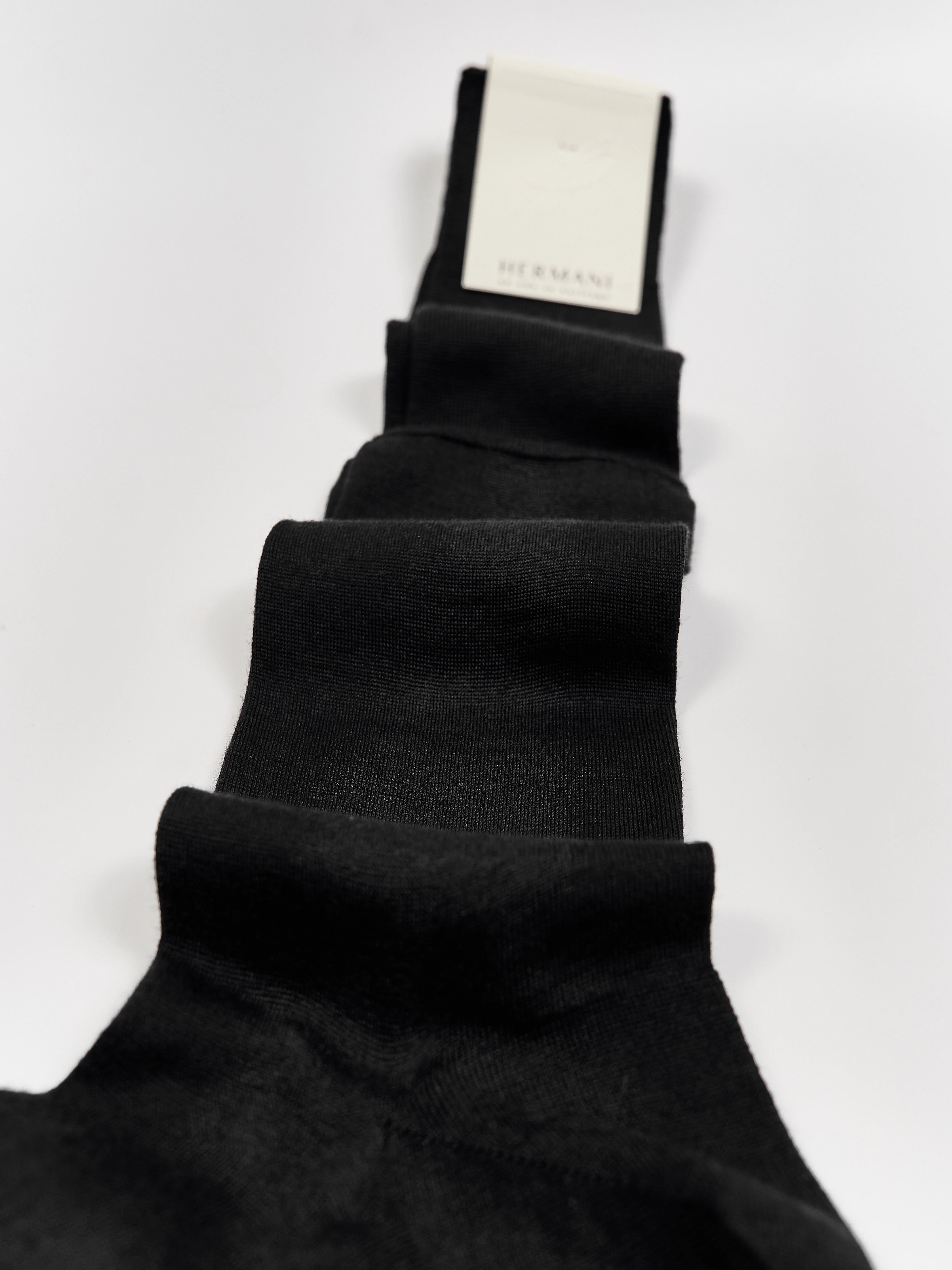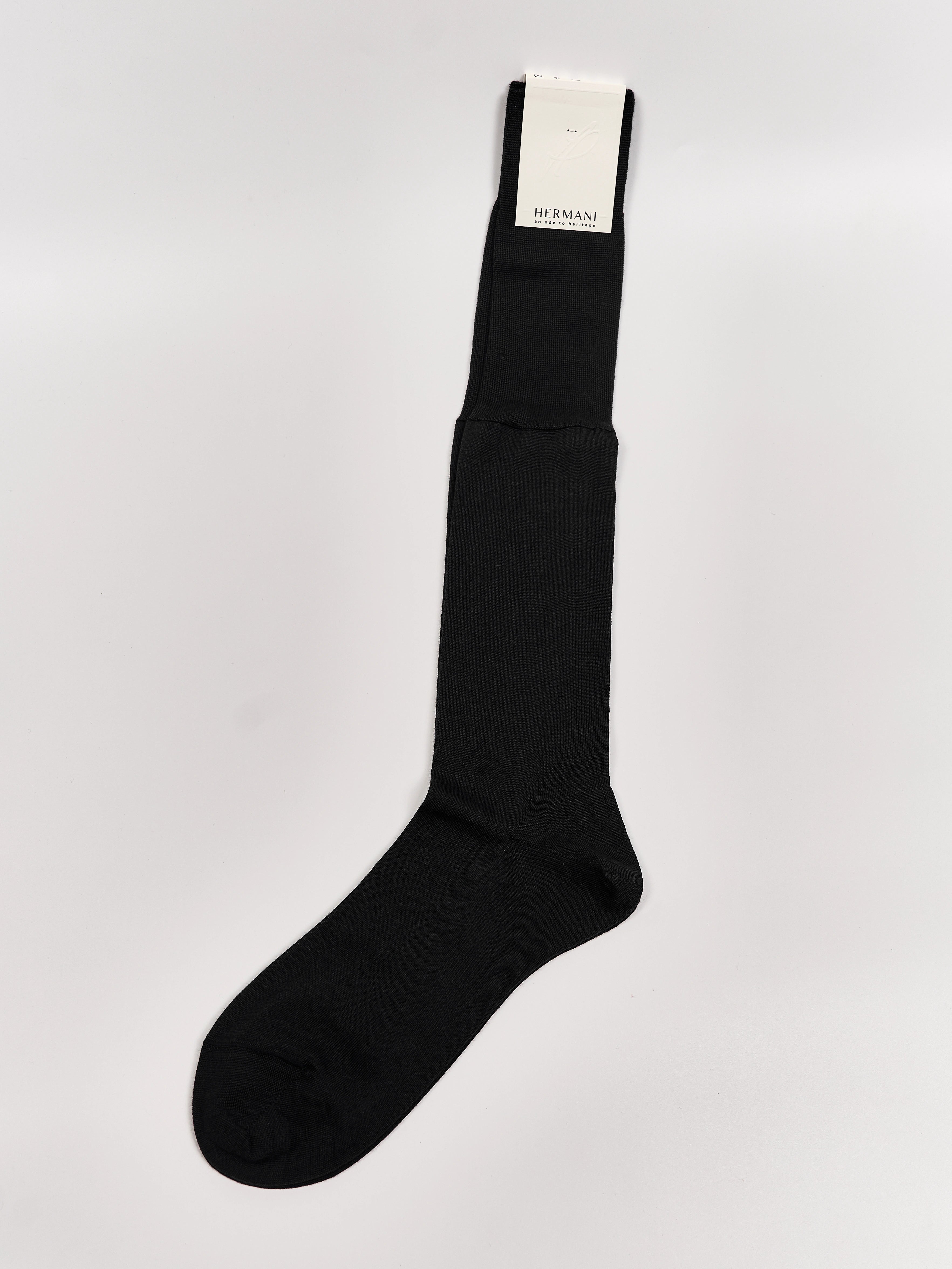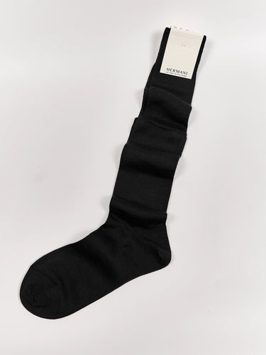 This handcrafted knee-high wool socks are made from 70% Cashmere and 30% Silk. The luxurious ribbed medium-light knit offers a uniquely elegant aesthetic, perfect wearability, warm comfort and is an indispensable complement to formal and sophisticated attire. This sock is 100% made in Italy and underlies the European Oeko-Tex standard.
