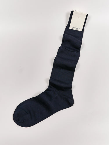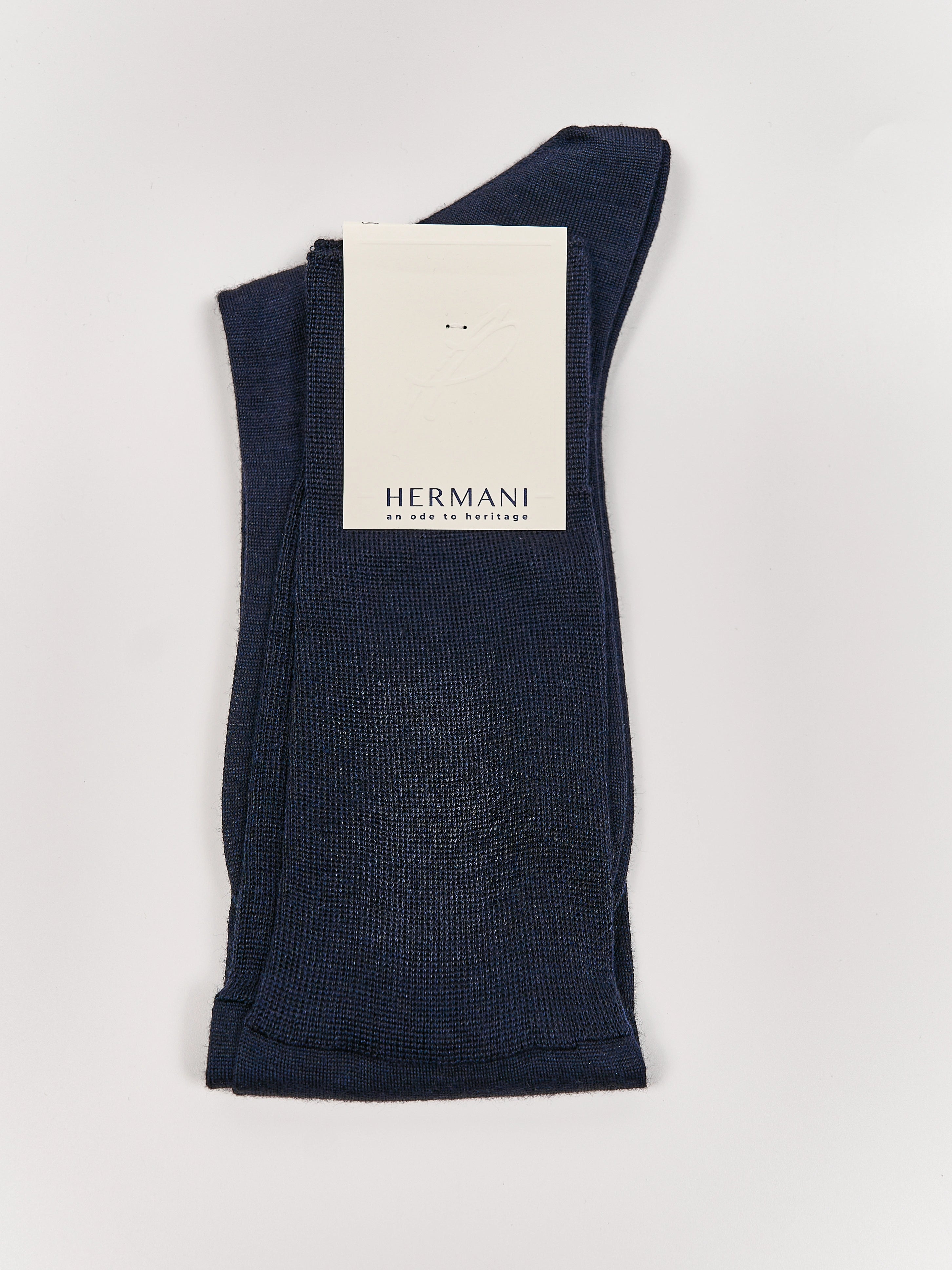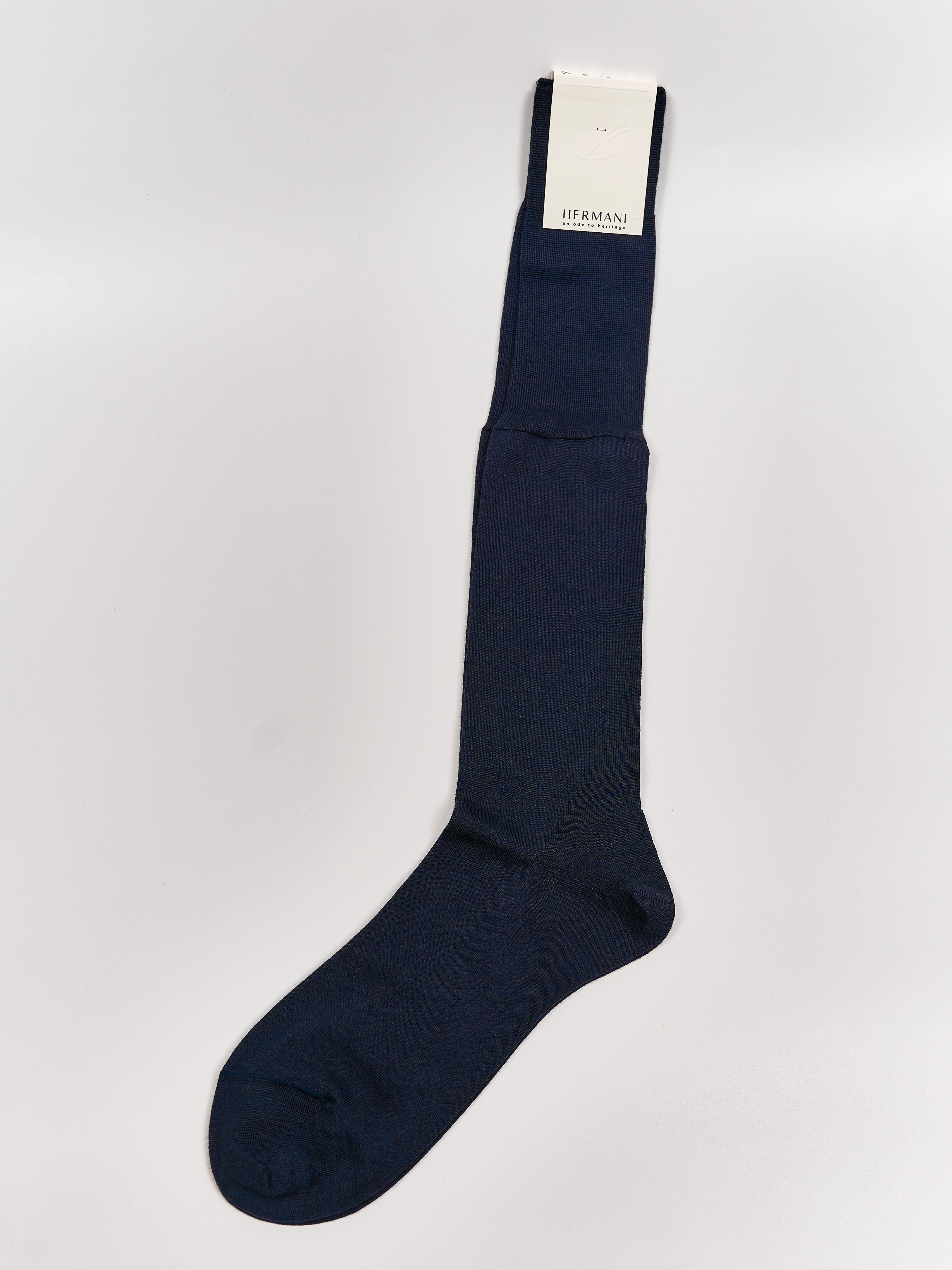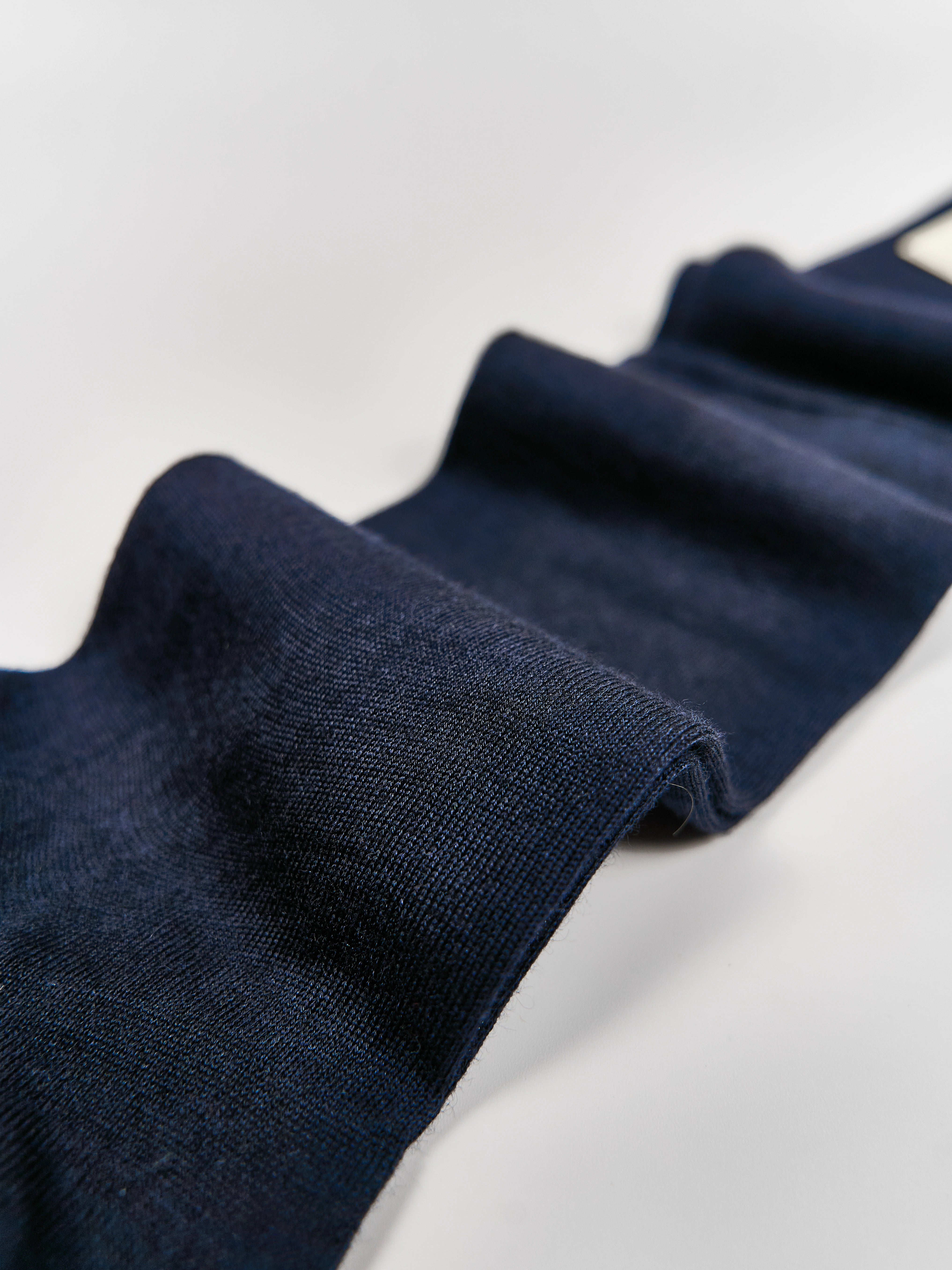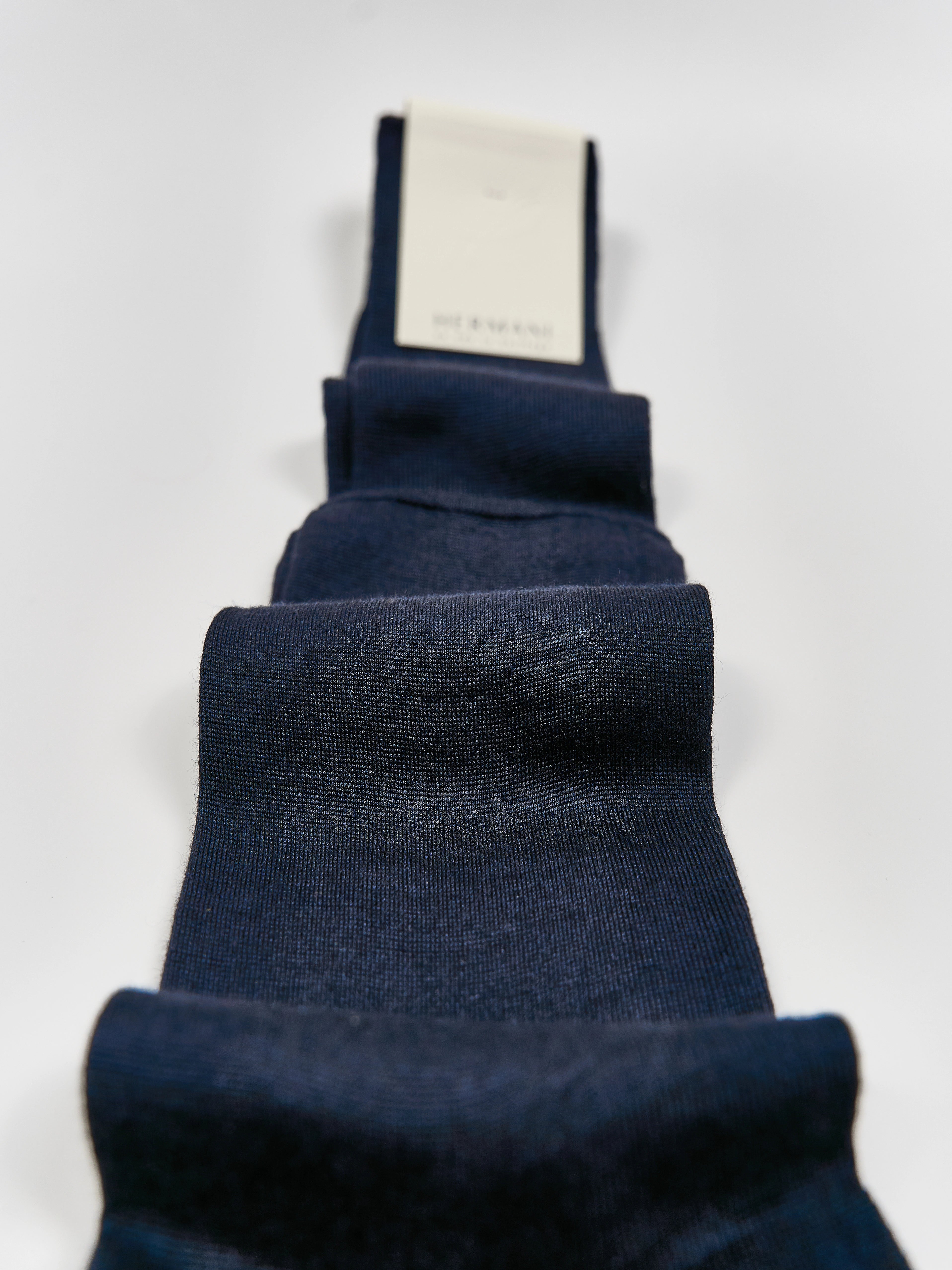 This handcrafted knee-high wool socks are made from 70% Cashmere and 30% Silk. The luxurious ribbed medium-light knit offers a uniquely elegant aesthetic, perfect wearability, warm comfort and is an indispensable complement to formal and sophisticated attire. This sock is 100% made in Italy and underlies the European Oeko-Tex standard.