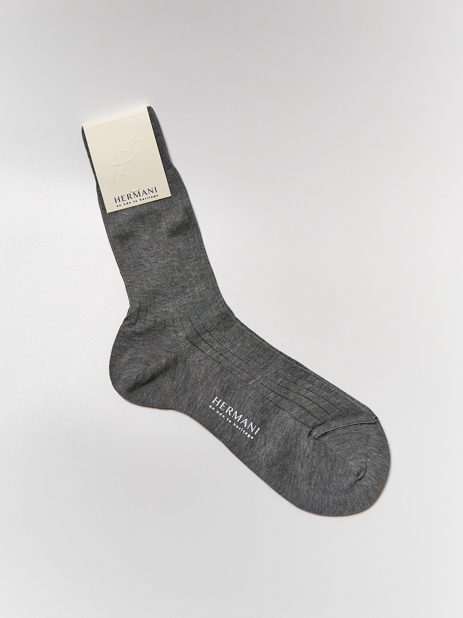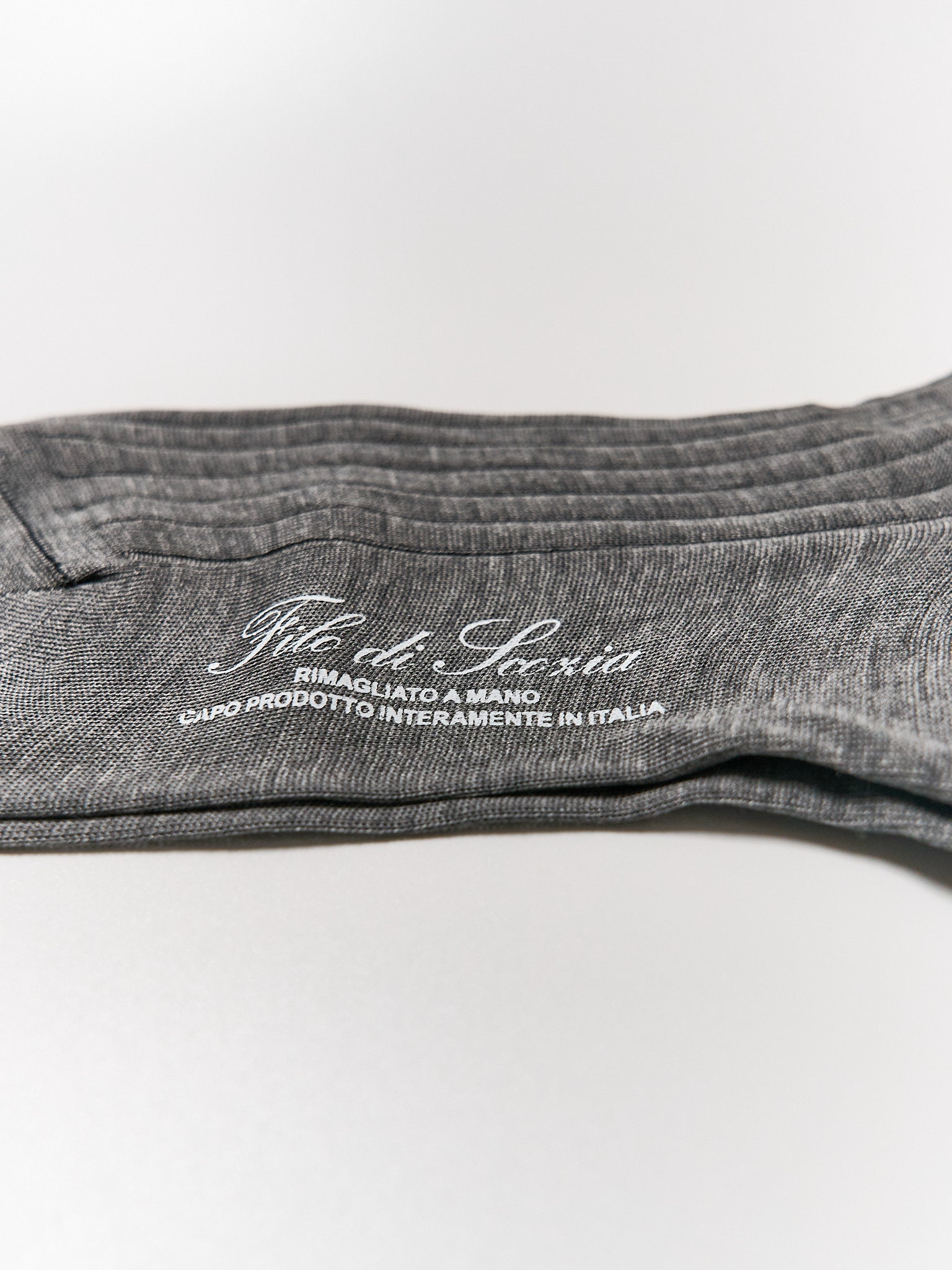 This pure fil d'Ecosse LISLE thread cotton is twisted and mercerized for an excellent fit. The light knit can be worn all year and is an indispensable complement to both elegant and casual dressing. Our rib-knit is finished with an English cuff, which is thin but highly resistant and allows the feet to breathe. Thanks to hand linking, the toe seam is imperceptible. This sock is 100% made in Italy and underlies the European Oeko-Tex standard. This model is available in our classic color palette.
