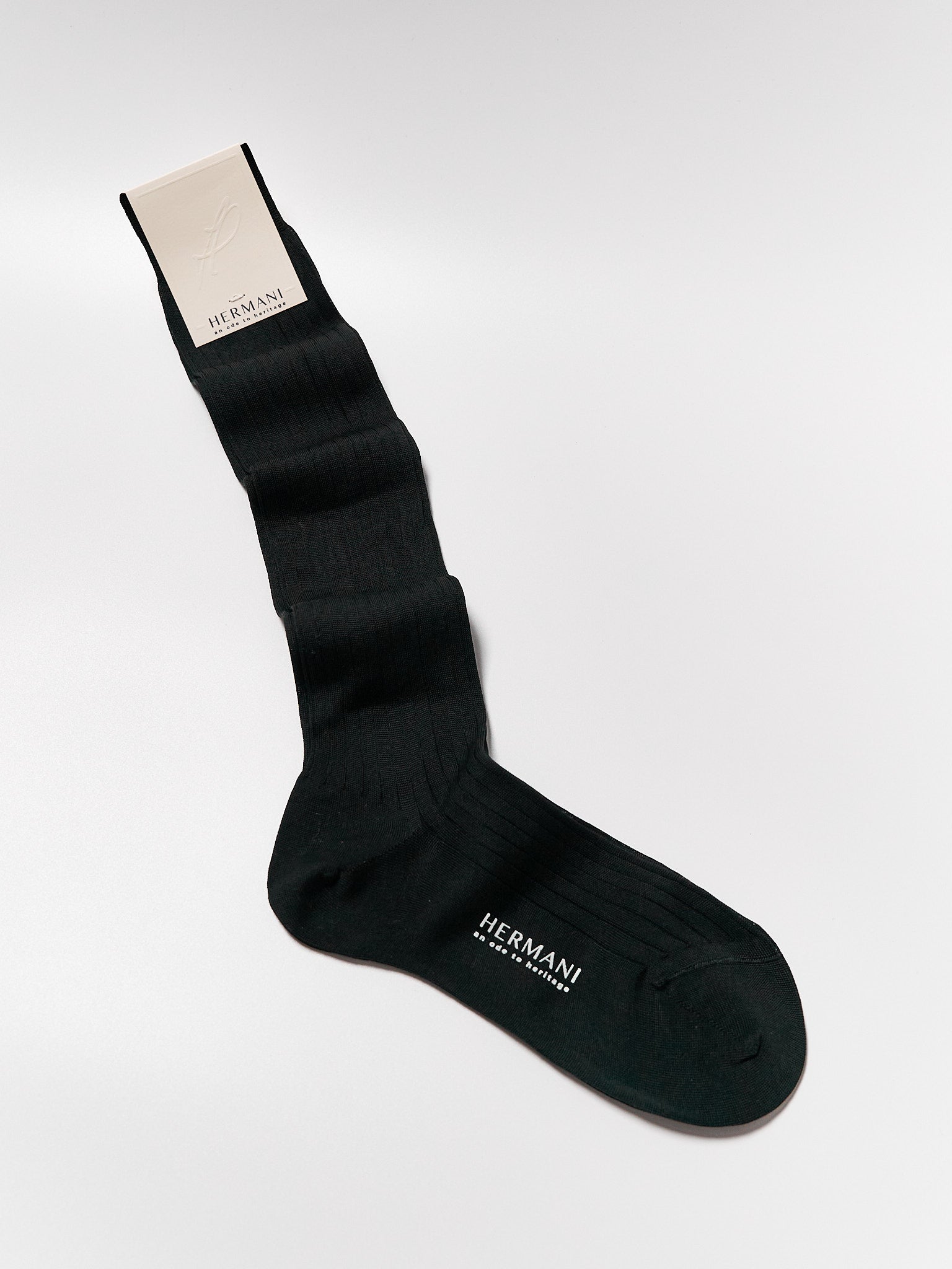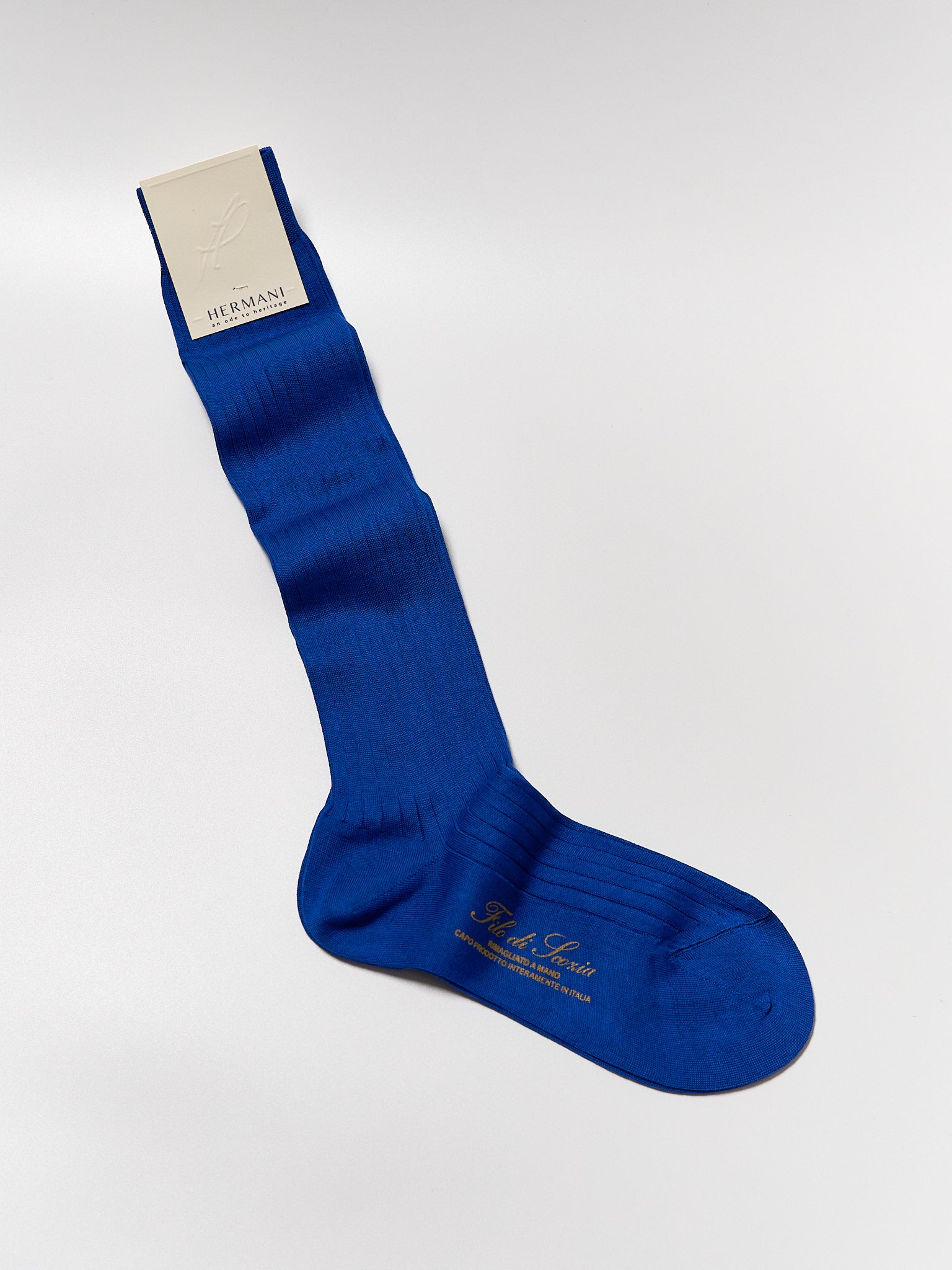 The Zaffiro/Nero Colour Ensemble combines our Egyptian cotton scarf with two complimentary Filo di Scozia socks in zaffiro and nero - a modern expression of minimalism.