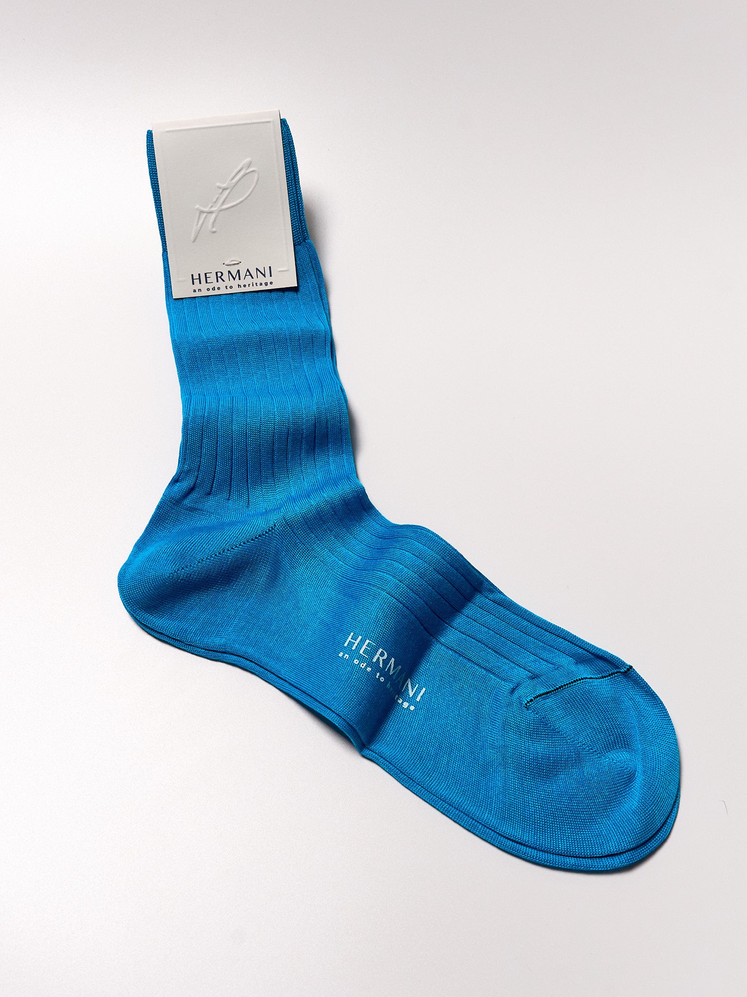 The Oliva/Acqua Colour Ensemble pairs our Egyptian cotton scarf with two complimentary Filo di Scozia socks in oliva and acqua.