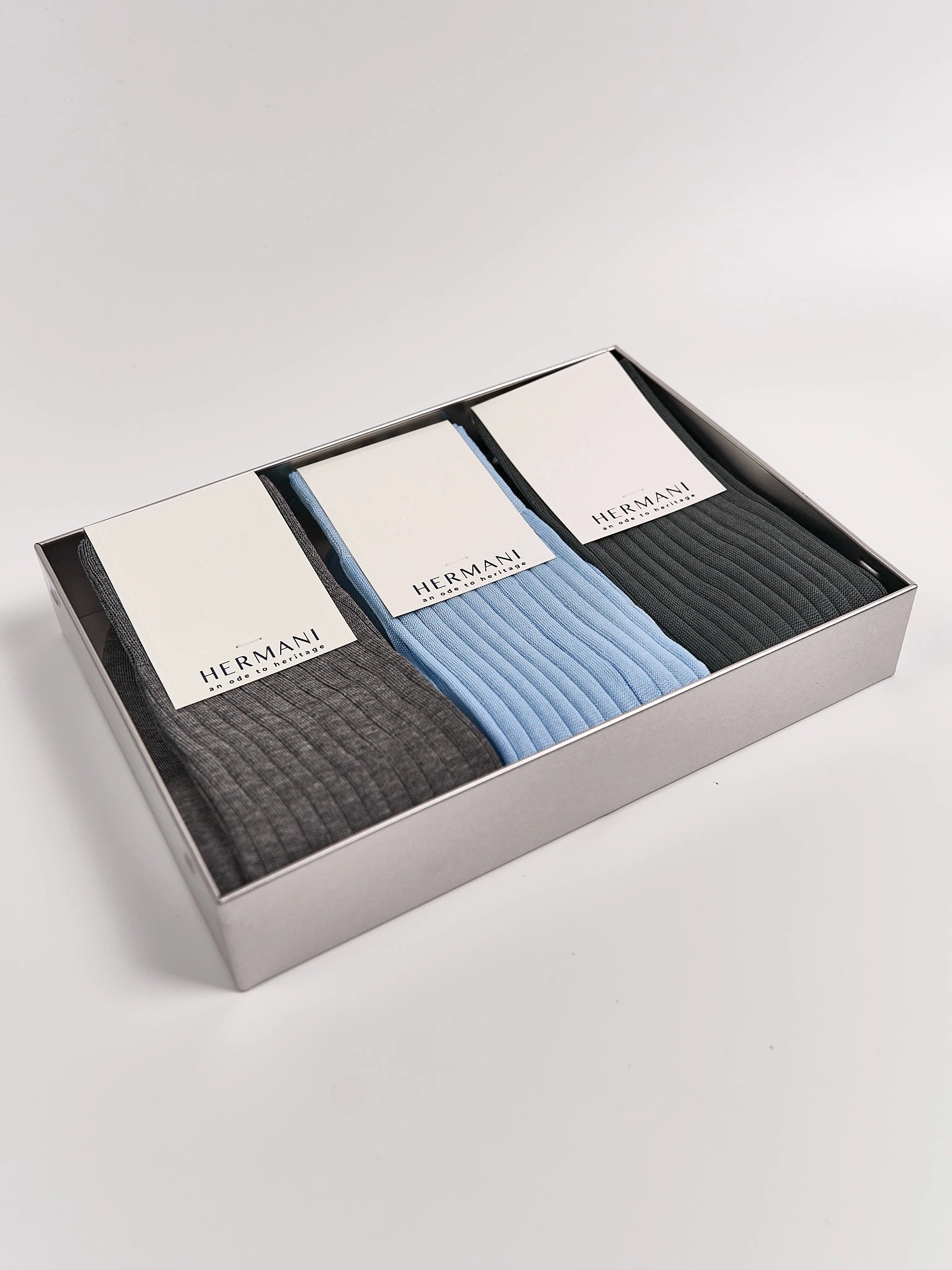 Gift Box: Egyptian Cotton Mid-Calf - Carbone, Celeste, Grigio